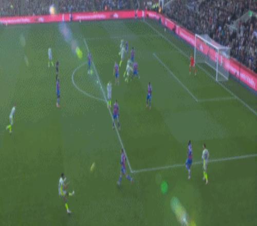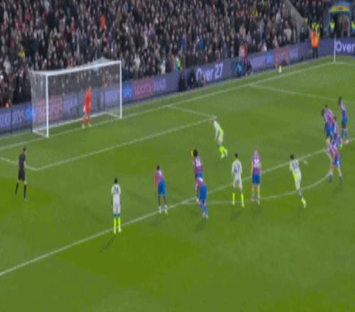 事實也的確如此,水晶宮開場之后不斷創(chuàng)造出破門良機。比賽的第16分鐘,沃頓直塞,皮諾單刀突入禁區(qū)右腳勁射擊中橫梁。