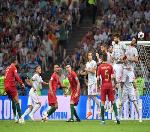 2018年6月15日,世界杯小組賽B組首輪,葡萄牙3-3西班牙。第87分鐘,C羅直接任意球破門上演帽子戲法,幫助葡萄牙3-3絕平。此球觀賞度極高且價值連城,被解說員盛贊為“翩若驚鴻,宛若游龍”。
