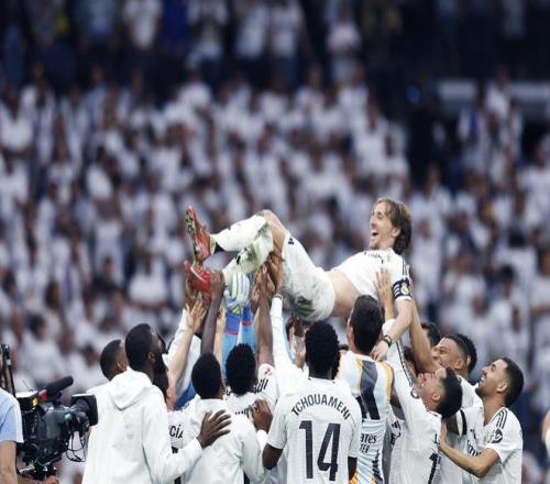 2025年5月24日,西甲第38輪,皇馬2-0皇家社會,莫德里奇完成了在伯納烏主場的告別戰(zhàn),皇馬球員將魔笛高高舉起。在13年皇馬生涯的597場比賽里,魔笛贏得了28座獎杯,成為皇馬隊史冠軍最多的球員。