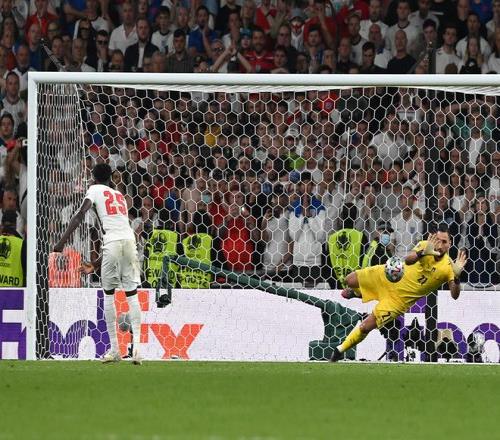 2021年7月11日,歐洲杯決賽,英格蘭與意大利戰(zhàn)成1-1后進入點球大戰(zhàn)。拉什福德與桑喬接連罰丟點球,第5輪,小將薩卡主罰的點球被多納魯馬撲出,意大利奪得了冠軍。三獅軍團再次魂斷12碼,成為了“三失軍團”。