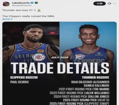 2019年夏天,快船為了雷霆那里挖來喬治,不惜大出血9換1,付出籌碼如下: