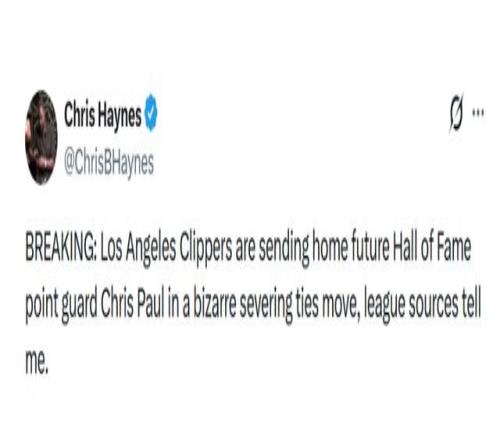 “根據(jù)聯(lián)盟內(nèi)部人士透露,快船將名人堂控衛(wèi)保羅送回家,此舉意在解除和保羅之間的合作關(guān)系。”