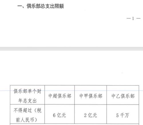 根據(jù)新規(guī),俱樂部單個財年(1月1日至12月31日)總支出限額分別為:中超不超過6億元、中甲不超過2億元、中乙不超過5000萬元。該總額包含青訓及女足費用,但不含基礎設施建維費用。