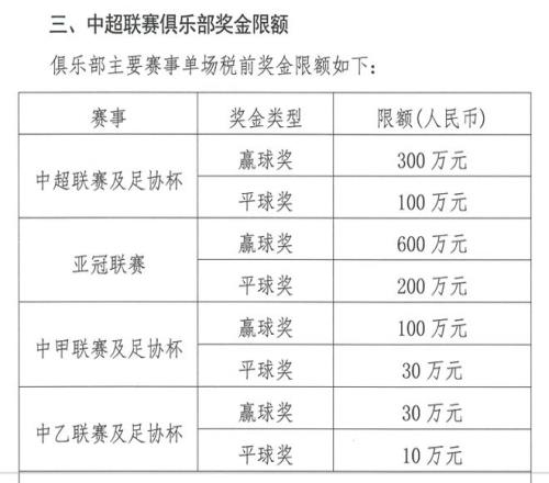 俱樂部主要賽事單場獎金亦有明確封頂。例如,中超聯(lián)賽及足協(xié)杯贏球獎不得超過300萬元,亞冠贏球獎不超過600萬元。此外,各俱樂部還可設立“機動獎金”,但總額受控(中超1000萬、中甲600萬、中乙300萬),且支出納入年度總限額。
