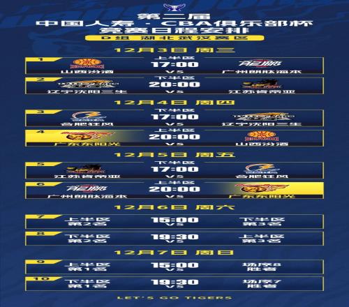 作為新賽季CBA聯(lián)賽前的重要賽事,本屆俱樂部杯成為各隊檢驗陣容、提升狀態(tài)的關(guān)鍵練兵場。小組賽將于12月3日-8日分別在湖南長沙、江西南昌、廣西南寧和湖北武漢四個賽區(qū)展開角逐,決賽階段的比賽則將于2026年2月6日-12日在內(nèi)蒙古自治區(qū)呼和浩特市舉行。