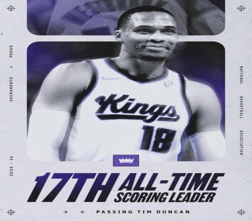 在上半場比賽中,威少8投3中得到了8分2籃板5助攻,他也在NBA歷史總得分幫上超越了蒂姆-鄧肯(26496分),升至歷史得分榜第17位。