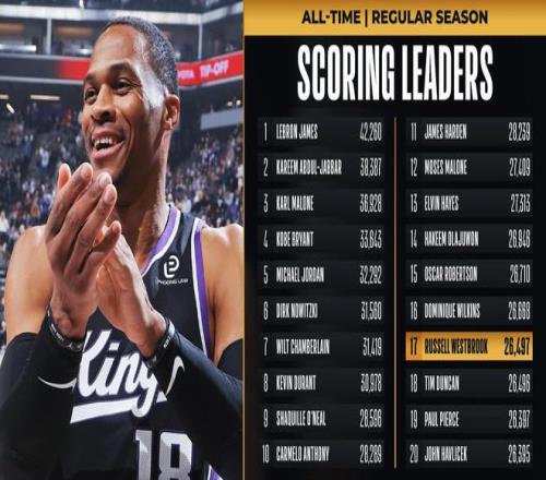 在威少身前的是“人類電影精華”多米尼克-威爾金斯,后者目前領(lǐng)先威少不到200分,威少完成超越也是唾手可得。