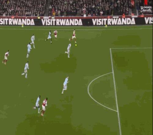 第28分鐘,阿森納前場打出精妙的配合,馬丁內利禁區(qū)前沿迎球射門高出橫梁。