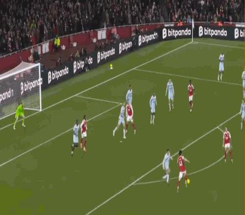 傷停補時階段,梅里諾送出直塞,薩卡閃開角度左腳射門,凱萊赫雖然撲到皮球但無力阻止皮球飛入球門。阿森納鎖定勝局。