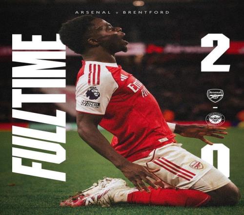 此役主場對陣布倫特福德,阿森納憑借梅里諾和薩卡各入一球,以2-0的比分擊敗對手。