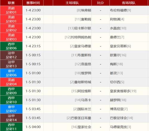 其他賽事比分: