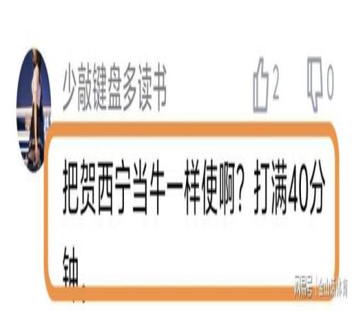 全場(chǎng)打滿40分,如此超負(fù)荷運(yùn)轉(zhuǎn),也讓球迷們心疼不已?!鞍奄R希寧當(dāng)牛一樣使?。看驖M40分鐘?!保弧吧a(chǎn)隊(duì)的驢都不帶這么用的”;“牛都不敢這樣用啊。真牛逼”;“老賀每場(chǎng)都這么用要不得,賽季漫長(zhǎng),這么用遲早要出問(wèn)題的。一旦老賀傷了,有深圳隊(duì)哭的時(shí)候,唉!”……