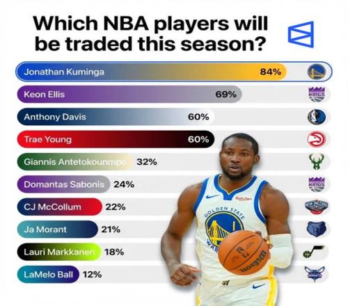 在美媒Polymarket統(tǒng)計(jì)的球員交易概率中,字母哥僅以32%排在第五名,遠(yuǎn)低于特雷楊(60%)、濃眉哥(60%)、埃利斯(69%)和庫明加(84%)。