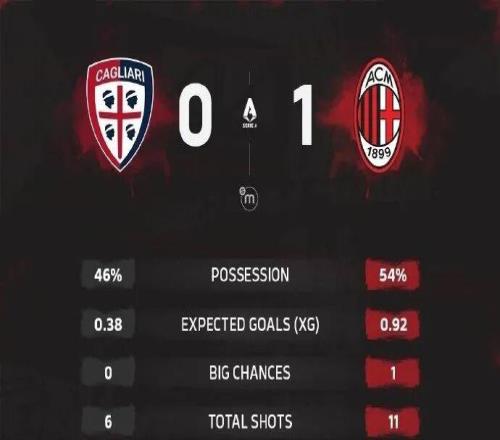 意甲第18輪的一場較量中,米蘭客場1-0擊敗卡利亞里。