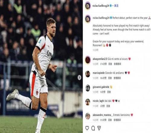 米蘭圈米蘭在本輪意甲1-0卡利亞里,新援中鋒菲爾克魯格替補完成首秀。他也在賽后通過社媒發(fā)文紀念:“完美的首秀,完美的新年開局 非常榮幸能立刻上演我的處子秀!雖然第一個主場比