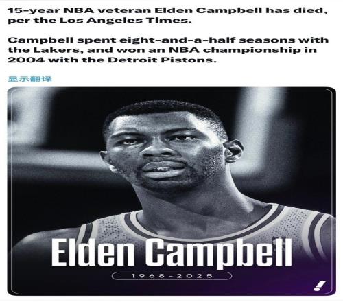 根據(jù)美媒《洛杉磯時報》報道,前NBA總冠軍中鋒埃爾登-坎貝爾于當(dāng)?shù)貢r間 12月2日去世,享年57歲,他的死因目前尚未對外公布。埃爾登-坎貝爾效力NBA15個賽季,其中效力湖人8個半賽季,
